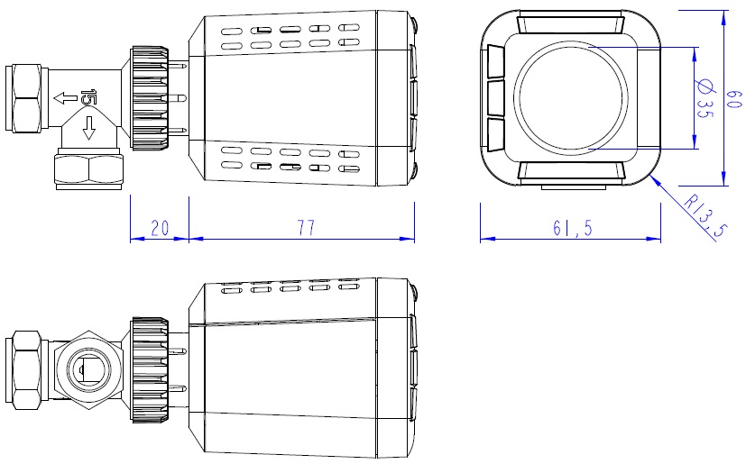 При первой установке, термоголовка проходит автоматическую адаптацию к клапану радиатора.