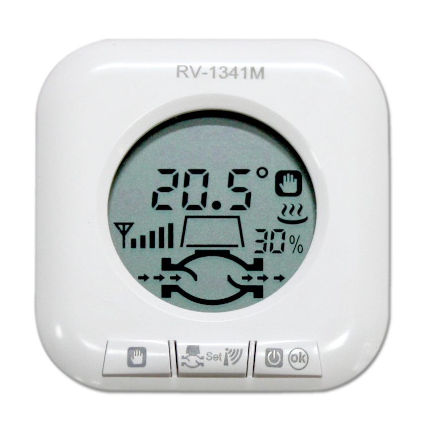 Беспроводной комплект управления радиаторным отоплением на базе непрограммируемого комнатного терморегулятора Frontier TH 1149RFR с встроенным датчиком температуры воздуха и беспроводной термоголовкой RV 1341M